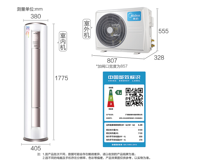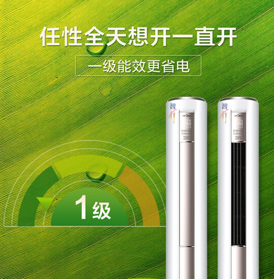 美的(Midea) KFR-51LW/BP3DN8Y-YH200(B1) 2匹智行 一级能效变频冷暖 立柜式客厅圆柱空调柜机