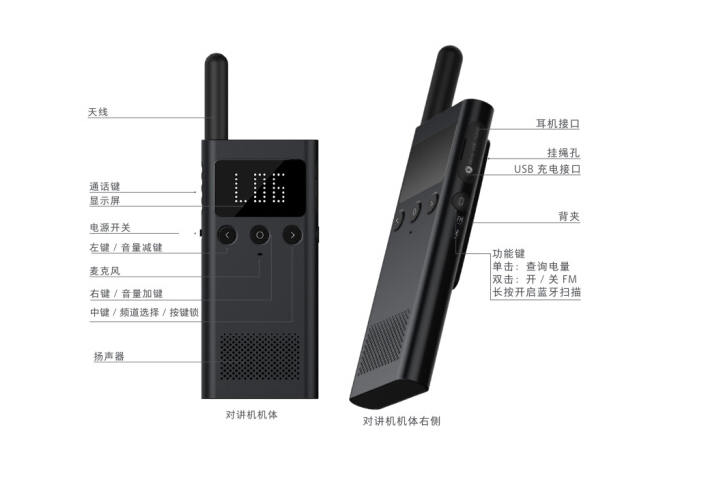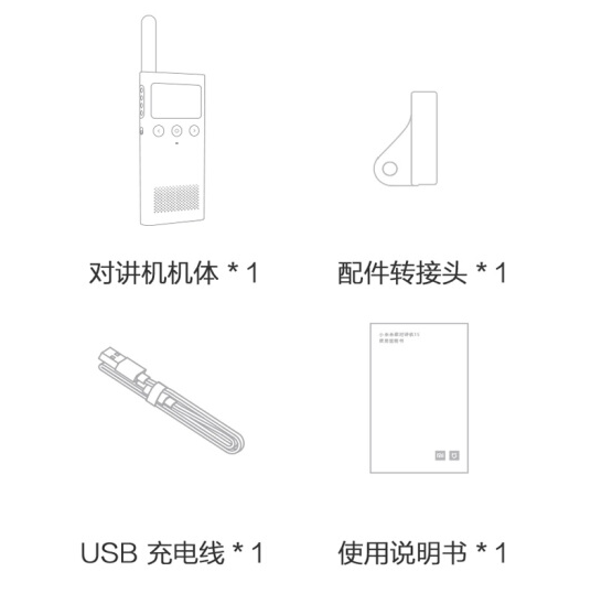 小米(MI) 1S 全新升级版对讲机 超轻 超薄 支持蓝牙耳机 超长待机 户外酒店自驾游民用手台