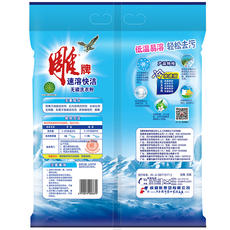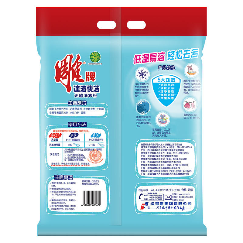 雕牌 速溶快洁无磷洗衣粉3.0kg