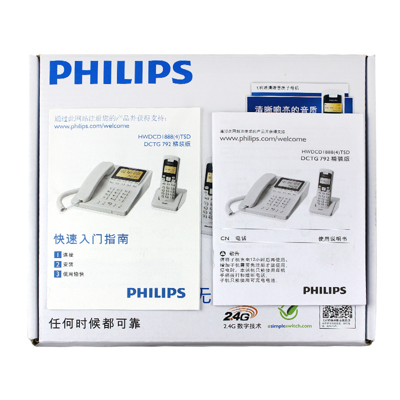 飞利浦(PHILIPS)DCTG792 一拖二子母机 来电显示 无绳电话机(蓝色)