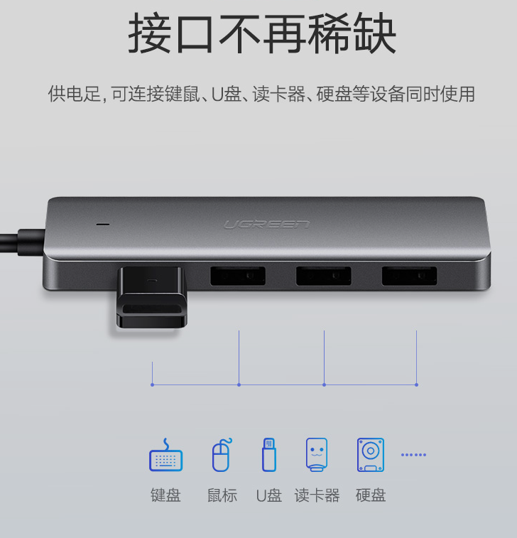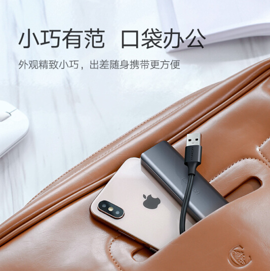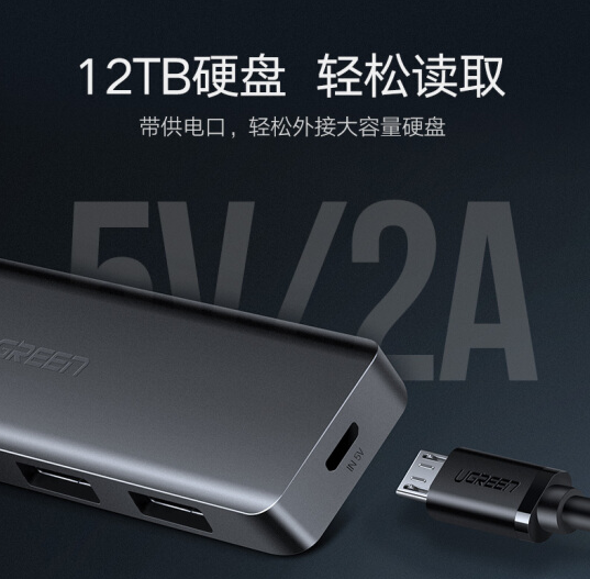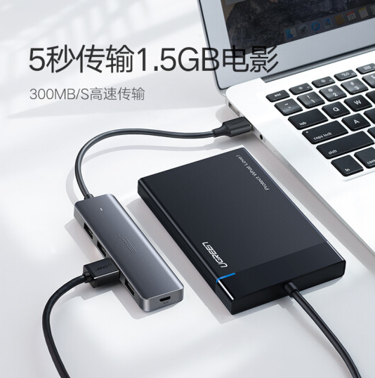 绿联 50985 USB3.0分线器 高速4口HUB扩展坞转换器 一拖四集线器延长线带电源接口