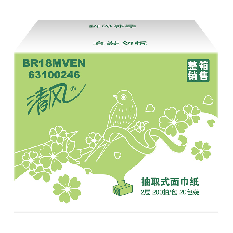 清风(APP)抽纸 柔韧2层200抽软抽*20包纸巾